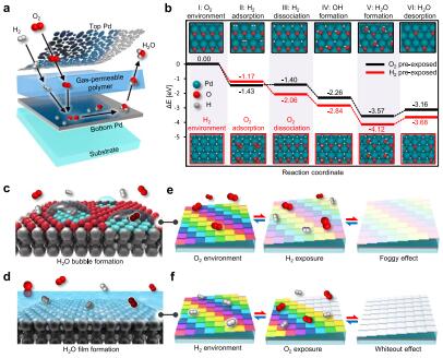 [1] Tang L, Li J. Plasmon-based colorimetric nanosensors for ultrasensitive molecular diagnostics. ACS Sens. 2017;2(7):857–75. https://doi.org/10.1021/acssensors.7b00282. [2] Ajay Piriya VS, Joseph P, Kiruba Daniel SCG, Lakshmanan S, Kinoshita T, Muthusamy S. Colorimetric sensors for rapid detection of various analytes. Mater Sci Eng C. 2017;78:1231–45. https://doi.org/10.1016/j.msec.2017.05.018. [3] Aldewachi H, Chalati T, Woodroofe M, Bricklebank N, Sharrack B, Gardiner P. Gold nanoparticle-based colorimetric biosensors. Nanoscale. 2018;10(1):18–33. https://doi.org/10.1039/C7NR06367A. [4] Liu B, Zhuang J, Wei G. Recent advances in the design of colorimetric sensors for environmental monitoring. Environ Sci Nano. 2020;7(8):2195–213. https://doi.org/10.1039/D0EN00449A. [5] Nguyen QH, Kim MI. Using nanomaterials in colorimetric toxin detection. Biochip J. 2021;15(2):123–34. https://doi.org/10.1007/s13206-021-00013-4. [6] Shu FZ, Yu FF, Peng RW, Zhu YY, Xiong B, Fan RH, et al. Dynamic plasmonic color generation based on phase transition of vanadium dioxide. Adv Opt Mater. 2018;6(7):1700939. https://doi.org/10.1002/adom.201700939. [7] Fudouzi H, Sawada T. Photonic rubber sheets with tunable color by elastic deformation. Langmuir. 2006;22(3):1365–8. https://doi.org/10.1021/la0521037. [8] Jung C, Kim S-J, Jang J, Ko JH, Kim D, Ko B, et al. Disordered-nanoparticle-based etalon for ultrafast humidity-responsive colorimetric sensors and anti-counterfeiting displays. Sci Adv. 2022;8(10):598. https://doi.org/10.1126/sciadv.abm8598. [9] de la Rica R, Stevens MM. Plasmonic ELISA for the ultrasensitive detection of disease biomarkers with the naked eye. Nat Nanotechnol. 2012;7(12):821–4. https://doi.org/10.1038/nnano.2012.186. [10] Duan X, Liu N. Scanning plasmonic color display. ACS Nano. 2018;12(8):8817–23. https://doi.org/10.1021/acsnano.8b05467. [11] Andringa AM, Meijboom JR, Smits EC, Mathijssen SG, Blom PW, de Leeuw DM. Gate‐bias controlled charge trapping as a mechanism for NO2 detection with field‐effect transistors. Adv Funct Mater. 2011;21:100–7. [12] Georg A, Georg A, Graf W, Wittwer V. Switchable windows with tungsten oxide. Vacuum. 2008;82(7):730–5. https://doi.org/10.1016/j.vacuum.2007.10.020. [13] Huiberts J, Griessen R, Rector J, Wijngaarden R, Dekker J, de Groot D, et al. Yttrium and lanthanum hydride films with switchable optical properties. Nature. 1996;380(6571):231–4. https://doi.org/10.1038/380231a0. [14] Palm KJ, Murray JB, Narayan TC, Munday JN. Dynamic optical properties of metal hydrides. ACS Photonics. 2018;5(11):4677–86. https://doi.org/10.1021/acsphotonics.8b01243. [15] Nørskov JK, Abild-Pedersen F, Studt F, Bligaard T. Density functional theory in surface chemistry and catalysis. Proc Natl Acad Sci. 2011;108(3):937–43. https://doi.org/10.1073/pnas.1006652108. [16] Rotermund H, Ertl G, Sesselmann W. Scanning photoemission microscopy of surfaces. Surf Sci. 1989;217(3):L383–90. https://doi.org/10.1016/0039-6028(89)90428-7. [17] Telieps W, Bauer E. An analytical reflection and emission UHV surface electron microscope. Ultramicroscopy. 1985;17(1):57–65. https://doi.org/10.1016/0304-3991(85)90177-9. [18] Dicke J, Rotermund H, Lauterbach J. Ellipsomicroscopy for surface imaging: contrast mechanism, enhancement, and application to CO oxidation on Pt (110). J Opt Soc Am A. 2000;17(1):135–41. https://doi.org/10.1364/JOSAA.17.000135. [19] Dicke J, Erichsen P, Wolff J, Rotermund H. Reflection anisotropy microscopy: improved set-up and applications to CO oxidation on platinum. Surf Sci. 2000;462(1–3):90–102. https://doi.org/10.1016/S0039-6028(00)00571-9. [20] Yuan W, Zhu B, Li X, Hansen TW, Ou Y, Fang K, et al. Visualizing H2O molecules reacting at TiO2 active sites with transmission electron microscopy. Science. 2020;367(6476):428–30. https://doi.org/10.1126/science.aay2474. [21] Dannetun HM, Söderberg D, Lundström I, Petersson L. The H2–O2 reaction on palladium studied over a large pressure range: Independence of the microscopic sticking coefficients on surface condition. Surf Sci. 1985;152:559–68. https://doi.org/10.1016/0039-6028(85)90188-8. [22] Petersson L, Dannetun HM, Lundström I. The water-forming reaction on palladium. Surf Sci. 1985;161(1):77–100. https://doi.org/10.1016/0039-6028(85)90729-0. [23] Petersson L, Dannetun HM, Lundström I. Water production on palladium in hydrogen-oxygen atmospheres. Surf Sci. 1985;163(1):273–84. https://doi.org/10.1016/0039-6028(85)90864-7. [24] Roques J, Lacaze-Dufaure C, Mijoule C. Dissociative adsorption of hydrogen and oxygen on palladium clusters: a comparison with the (111) infinite surface. J Chem Theory Comput. 2007;3(3):878–84. https://doi.org/10.1021/ct600370g. [25] El-Okazy MA, Liu L, Junk CP, Kathmann E, White W, Kentish SE. Gas separation performance of copolymers of perfluoro (butenyl vinyl ether) and perfluoro (2, 2-dimethyl-1, 3-dioxole). J Membr Sci. 2021;634:119401. https://doi.org/10.1016/j.memsci.2021.119401. [26] Kim KR, Noh J, Lee JM, Kim YJ, Lee W. Suppression of phase transitions in Pd thin films by insertion of a Ti buffer layer. J Mater Sci. 2011;46(6):1597–601. https://doi.org/10.1007/s10853-010-4970-x. [27] Nyberg C, Tengstål C. Adsorption and reaction of water, oxygen, and hydrogen on Pd (100): identification of adsorbed hydroxyl and implications for the catalytic H2–O2 reaction. J Chem Phys. 1984;80(7):3463–8. https://doi.org/10.1063/1.447102. [28] Ryu Y, Yoo D, Wittenberg NJ, Jordan LR, Lee S-D, Parikh AN, et al. Lipid membrane deformation accompanied by disk-to-ring shape transition of cholesterol-rich domains. J Am Chem Soc. 2015;137(27):8692–5. https://doi.org/10.1021/jacs.5b04559. [29] Vaughan JM. The Fabry-Perot interferometer: history, theory, practice and applications. Oxford: Routledge; 2017. [30] Yu E, Lee SH, Bae YG, Choi J, Lee D, Kim C, et al. Highly sensitive color tunablility by scalable nanomorphology of a dielectric layer in liquid