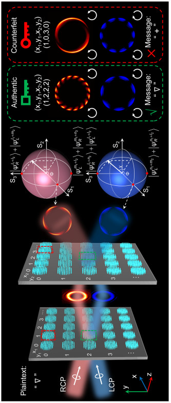 [1] Matoba O, Nomura T, Perez-Cabre E, Millan MS, Javidi B. Optical techniques for information security. Proc IEEE. 2009;97(6):1128–48. [2] Chen W, Javidi B, Chen X. Advances in optical security systems. Adv Opt Photonics. 2014;6(2):120–55. [3] Liu S, Guo C, Sheridan JT. A review of optical image encryption techniques. Opt Laser Technol. 2014;57:327–42. [4] Jiao S, Zhou C, Shi Y, Zou W, Li X. Review on optical image hiding and watermarking techniques. Opt Laser Technol. 2019;109:370–80. [5] Liu S, Liu X, Yuan J, Bao J. Multidimensional information encryption and storage: when the input is light. Res (Wash D C). 2021;2021:7897849. [6] Yu NF, Genevet P, Kats MA, Aieta F, Tetienne JP, Capasso F, et al. Light propagation with phase discontinuities: generalized laws of reflection and refraction. Science. 2011;334(6054):333–7. [7] Yu N, Capasso F. Flat optics with designer metasurfaces. Nat Mater. 2014;13(2):139–50. [8] Zhao R, Huang L, Wang Y. Recent advances in multi-dimensional metasurfaces holographic technologies. PhotoniX. 2020;1(1):20. [9] Deng Z-L, Wang Z-Q, Li F-J, Hu M-X, Li X. Multi-freedom metasurface empowered vectorial holography. Nanophotonics. 2022;11(9):1725–39. [10] Li T, Chen C, Xiao X, Chen J, Hu S, Zhu S. Revolutionary meta-imaging: from superlens to metalens. Photonics Insights. 2023;2(1):R01. [11] Yang H, Ou K, Wan H, Hu Y, Wei Z, Jia H, et al. Metasurface-empowered optical cryptography. Mater Today. 2023;67:424–45. [12] Jung C, Kim G, Jeong M, Jang J, Dong Z, Badloe T, et al. Metasurface-driven optically variable devices. Chem Rev. 2021;121(21):13013–50. [13] So S, Mun J, Park J, Rho J. Revisiting the design strategies for metasurfaces: fundamental physics, optimization, and beyond. Adv Mater. 2023;35(43):2206399. [14] Kamali SM, Arbabi E, Arbabi A, Horie Y, Faraji-Dana M, Faraon A. Angle-multiplexed metasurfaces: encoding independent wavefronts in a single metasurface under different illumination angles. Phys Rev X. 2017;7(4):041056. [15] Wan S, Wan C, Dai C, Li Z, Tang J, Zheng G, et al. Angular-multiplexing metasurface: building up independent-encoded amplitude/phase dictionary for angular illumination. Adv Opt Mater. 2021;9(22):2101547. [16] Wan S, Tang J, Wan C, Li Z, Li Z. Angular-encrypted quad-fold display of nanoprinting and meta-holography for optical information storage. Adv Opt Mater. 2022;10(11):2102820. [17] Lim KTP, Liu H, Liu Y, Yang JKW. Holographic colour prints for enhanced optical security by combined phase and amplitude control. Nat Commun. 2019;10(1):25. [18] Yue F, Zhang C, Zang XF, Wen D, Gerardot BD, Zhang S, et al. High-resolution grayscale image hidden in a laser beam. Light Sci Appl. 2018;7:17129. [19] Yang H, Jiang Y, Hu Y, Ou K, Duan H. Noninterleaved metasurface for full-polarization three-dimensional vectorial holography. Laser Photonics Rev. 2022;16(11):2200351. [20] Zhou H, Sain B, Wang Y, Schlickriede C, Zhao R, Zhang X, et al. Polarization-encrypted orbital angular momentum multiplexed metasurface holography. ACS Nano. 2020;14(5):5553–9. [21] Ren H, Fang X, Jang J, Burger J, Rho J, Maier SA. Complex-amplitude metasurface-based orbital angular momentum holography in momentum space. Nat Nanotechnol. 2020;15(11):948–55. [22] Jin L, Huang Y-W, Jin Z, Devlin RC, Dong Z, Mei S, et al. Dielectric multi-momentum meta-transformer in the visible. Nat Commun. 2019;10(1):4789. [23] Ren H, Briere G, Fang X, Ni P, Sawant R, Héron S, et al. Metasurface orbital angular momentum holography. Nat Commun. 2019;10(1):2986. [24] Qu G, Yang W, Song Q, Liu Y, Qiu CW, Han J, et al. Reprogrammable meta-hologram for optical encryption. Nat Commun. 2020;11(1):5484. [25] Georgi P, Wei QS, Sain B, Schlickriede C, Wang YT, Huang LL, et al. Optical secret sharing with cascaded metasurface holography. Sci Adv. 2021;7(16):eabf9718. [26] Luo X, Hu Y, Li X, Jiang Y, Wang Y, Dai P, et al. Integrated metasurfaces with microprints and helicity-multiplexed holograms for real-time optical encryption. Adv Opt Mater. 2020;8(8):1902020. [27] Kim J, Jeon D, Seong J, Badloe T, Jeon N, Kim G, et al. Photonic encryption platform via dual-band vectorial metaholograms in the ultraviolet and visible. ACS Nano. 2022;16(3):3546–53. [28] Guo X, Zhong J, Li B, Qi S, Li Y, Li P, et al. Full-color holographic display and encryption with full-polarization degree of freedom. Adv Mater. 2022;34(3):e2103192. [29] Li J, Guan Z, Liu HC, He Z, Li Z, Yu S, et al. Metasurface-assisted indirect-observation cryptographic system. Laser Photonics Rev. 2022;17(1):2200342. [30] Yang H, He P, Ou K, Hu Y, Jiang Y, Ou X, et al. Angular momentum holography via a minimalist metasurface for optical nested encryption. Light Sci Appl. 2023;12(1):79. [31] Jin L, Dong Z, Mei S, Yu YF, Wei Z, Pan Z, et al. Noninterleaved Metasurface for (2(6)-1) Spin- and Wavelength-Encoded Holograms. Nano Lett. 2018;18(12):8016–24. [32] Bao Y, Yu Y, Xu H, Lin Q, Wang Y, Li J, et al. Coherent pixel design of metasurfaces for multidimensional optical control of multiple printing-image switching and encoding. Adv Funct Mater. 2018;28(51):1805306. [33] Zheng PX, Dai Q, Li ZL, Ye ZY, Xiong J, Liu HC, et al. Metasurface-based key for computational imaging encryption. Sci Adv. 2021;7(21):eabg0363. [34] Guo X, Li P, Zhong J, Wen D, Wei B, Liu S, et al. Stokes meta-hologram toward optical cryptography. Nat Commun. 2022;13(1):6687. [35] Kim I, Jang J, Kim G, Lee J, Badloe T, Mun J, et al. Pixelated bifunctional metasurface-driven dynamic vectorial holographic color prints for photonic security platform. Nat Commun. 2021;12(1):3614. [36] Xiong B, Xu Y, Wang J, Li L, Deng L, Cheng F, et al. Realizing colorful holographic mimicry by metasurfaces. Adv Mater. 2021;33(21):e2005864. [37] Hu Y, Ou X, Zeng T, Lai J, Zhang J, Li X, et al. Electrically tunable multifunctional polarization-dependent metasurfaces integrated with liquid crystals in the visible Region. Nano Lett. 2021;21(11):4554–62. [38] Gao H, Fan X, Xiong W,